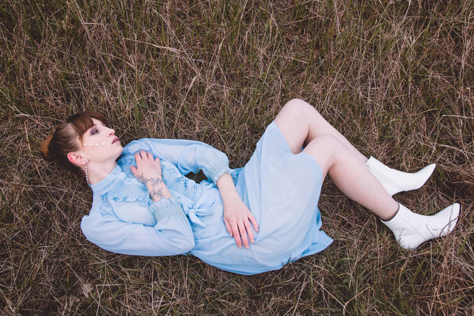 The first time I was published was with Nicole from Endless Management in Volant Magazine! I styled these myself, but also borrowed clothes from a stylist friend! The field location wasn't planned ahead of time, or the antique shop. Nicole's mom actually made the newspaper print dress!
